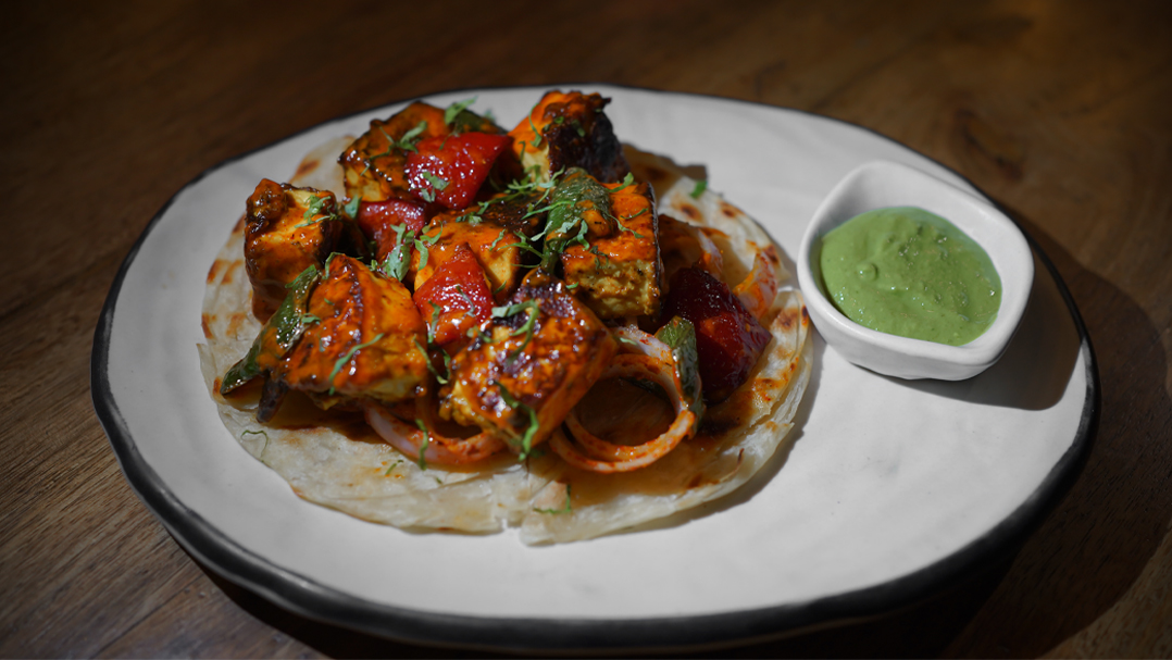 ₹ 695COTTAGE CHEESE MARINATED WITH HUNG CURD, IN INDIAN HOMEMADE SPICE, SERVED WITH MALABAR PARATHA AND MINT CHUTNEY [GLUTEN, VEGETARIAN, DAIRY]